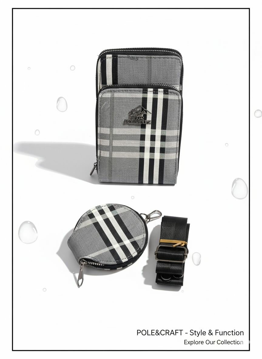 Découvrez notre élégante pochette à bandoulière grise avec motif à carreaux. Idéale pour ranger vos essentiels, elle est parfaite pour les sorties quotidiennes.