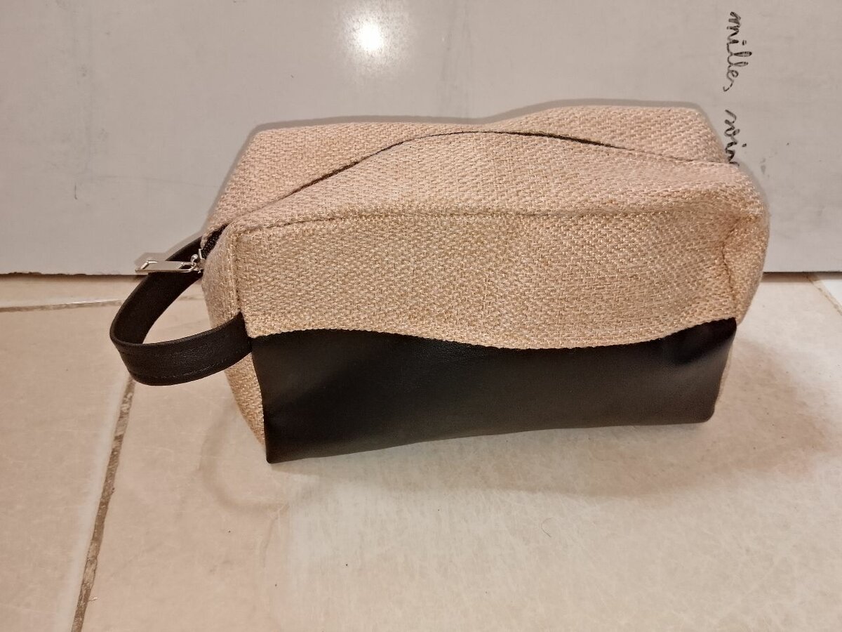 Trouvez l'élégance avec cette pochette de maquillage en toile et cuir. Parfaite pour ranger vos produits de beauté, elle combine style et praticité. Sa fermeture éclair sécurisée et sa poignée en cuir en font un accessoire indispensable pour vos déplacements.