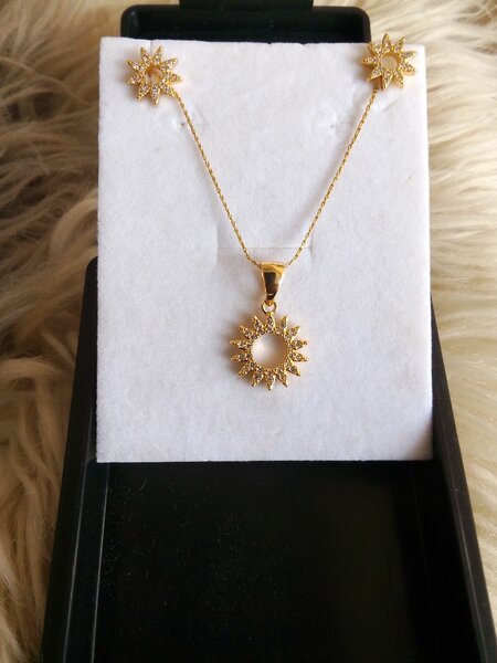 Parure Collier et Boucles d'Oreille Soleil Doré
