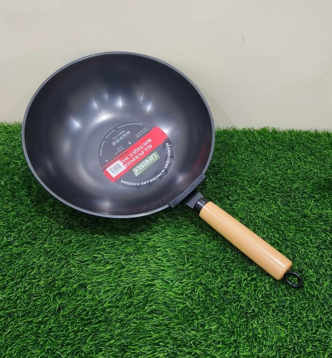 Poêle polyvalente pour cuisson saine et facile. Manche en bois ergonomique, revêtement antiadhésif durable. Idéale pour la cuisine quotidienne, préparations rapides et saines.