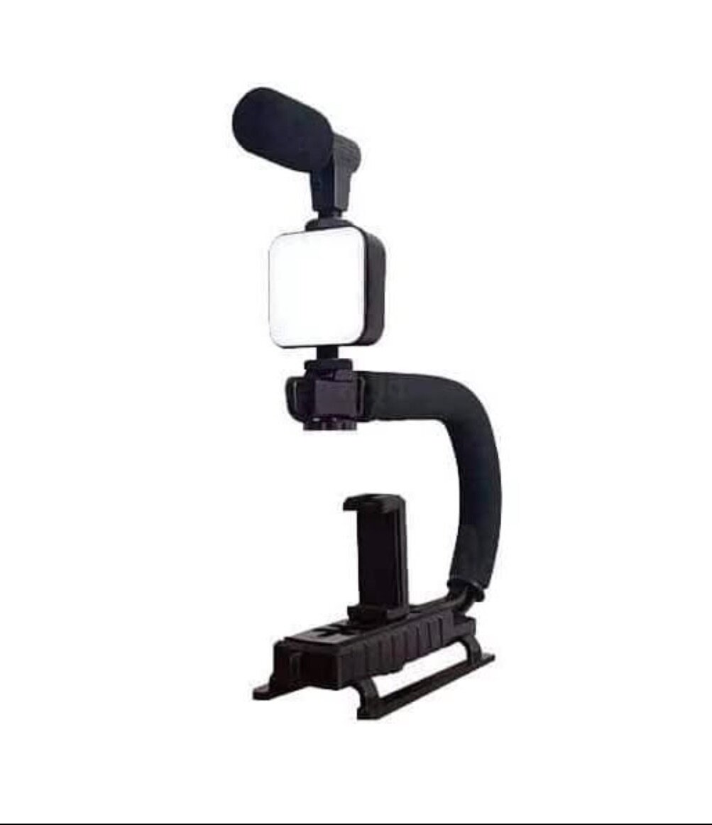 Action Vidéo Poignée Stabilisatrice Stabilisateur de Poche avec Lumière LED Microphone Adaptateur de Chaussure Chaude Support de Stabilisateur de Caméra Portable en Forme de U pour Appareil Photo