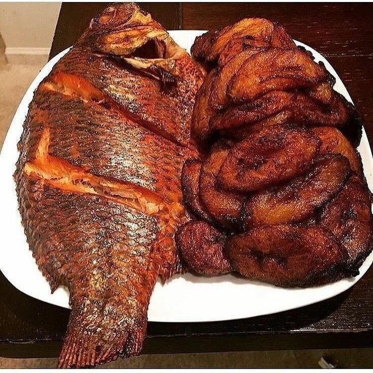 Poisson Carpe Frit assaisonné Aux épices Du Cameroun + Alloco LES PLATS SONT DISPONIBLES À PARTIR DE 18HEURES JUSQU'À 20HEURES