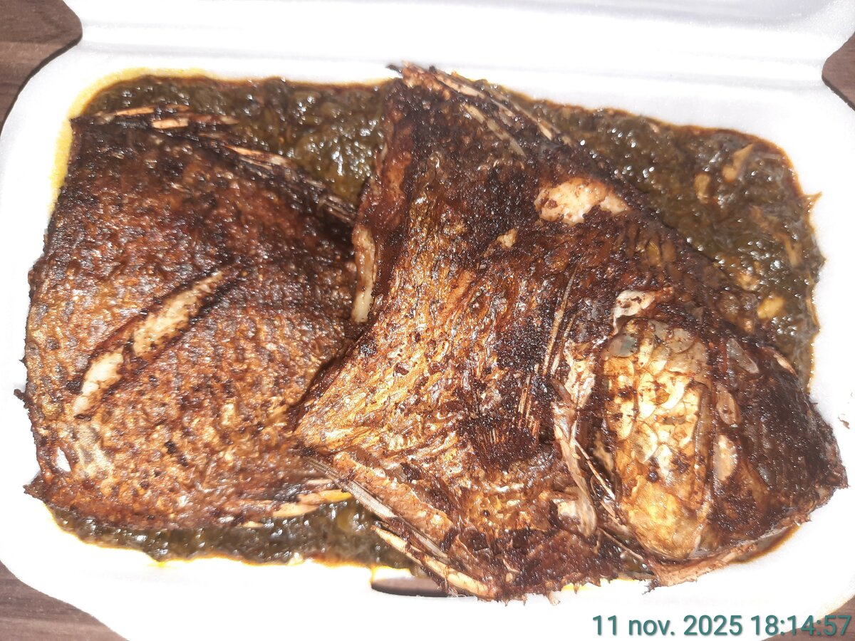 Dégustez notre délicieuce sauce au poisson frit, accompagné de riz moelleux. Parfait pour un déjeuner savoureux et équilibré. Appréciez chaque bouchée!