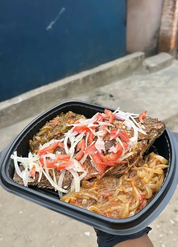 Gros poisson entier + Attieké
