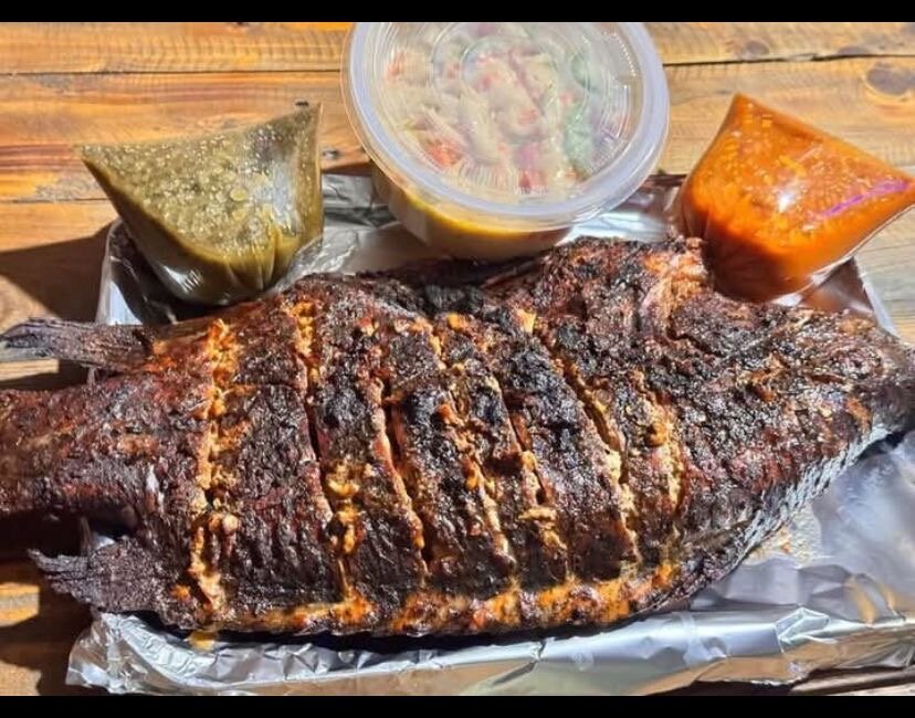 Découvrez notre délicieux poisson grillé, parfaitement assaisonné et accompagné de sauces maison pour une explosion de saveurs. Idéal pour vos repas en famille ou entre amis, ce plat est prêt à être dégusté. Savourez une expérience culinaire authentique dès aujourd'hui !