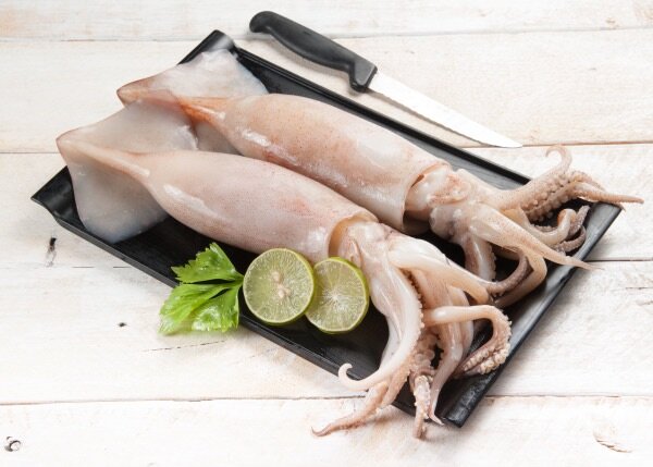 Calamars frais sur plaque