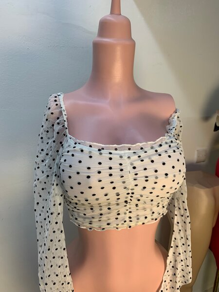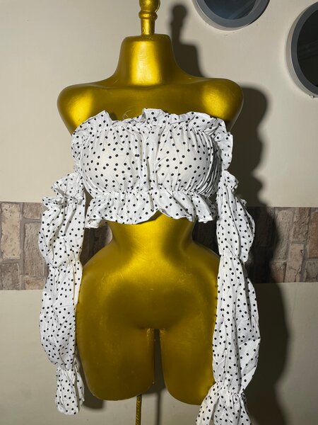 Elevate your wardrobe with this chic polka dot off-shoulder top. Perfect for casual outings or a stylish evening, this top features elegant ruffled sleeves for a feminine touch. Made from comfortable, breathable fabric. Pair it with your favorite jeans or a skirt for a fashionable look!