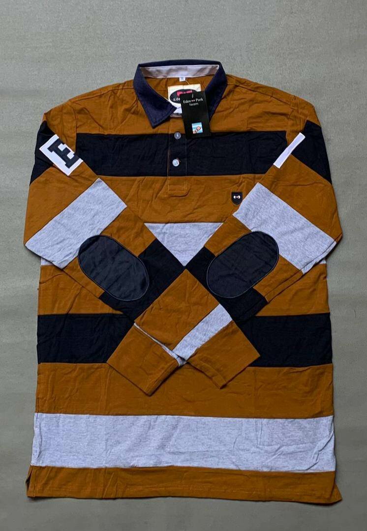 Polo à rayures marron et noir, parfait pour un look décontracté et élégant. Fabriqué avec des matériaux de haute qualité et orné de coudières pour un style raffiné. Idéal pour les hommes souhaitant allier confort et tendance. Parfait pour toutes les saisons.