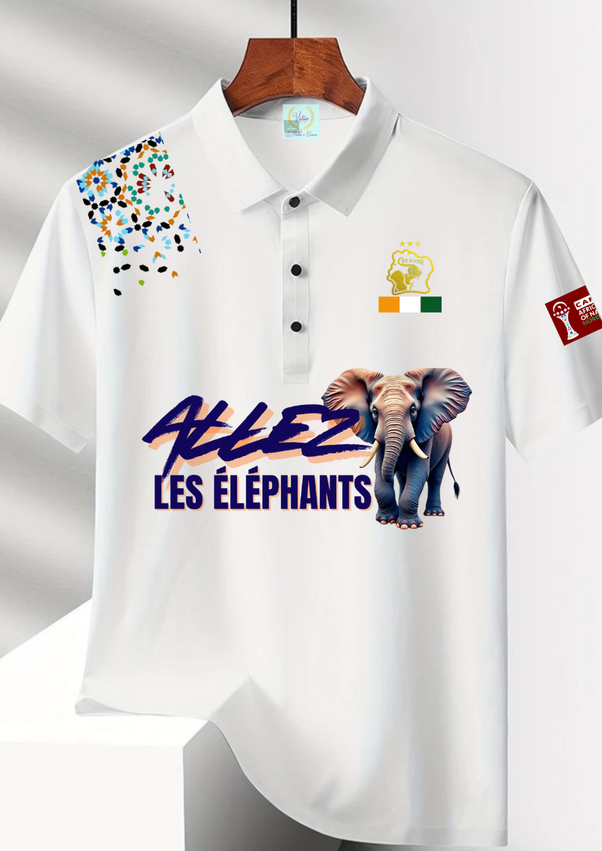 Polo élégant avec motif "Allez Les Éléphants", idéal pour les fans passionnés. Fabriqué en matériau confortable, il est parfait pour les événements sportifs et sorties décontractées. Exprimez votre soutien avec style !