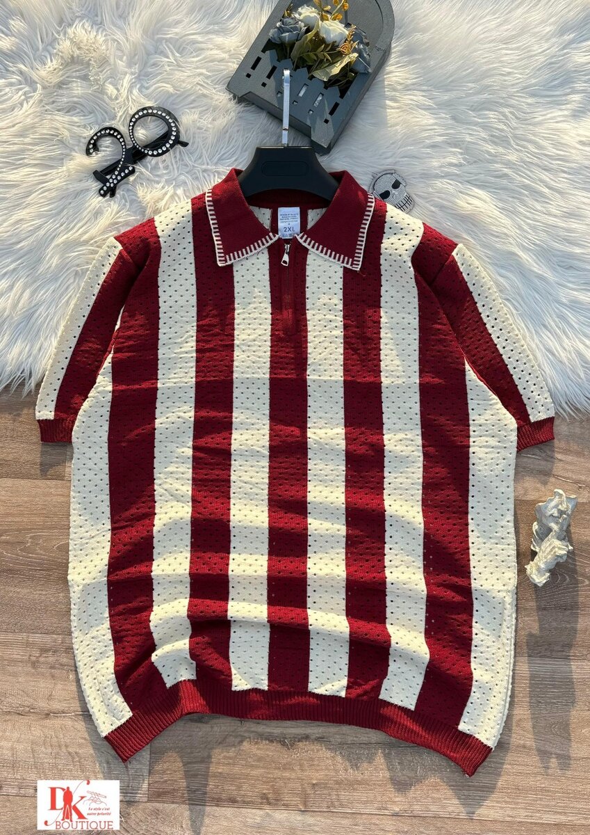 Polo zippé rayé unisexe