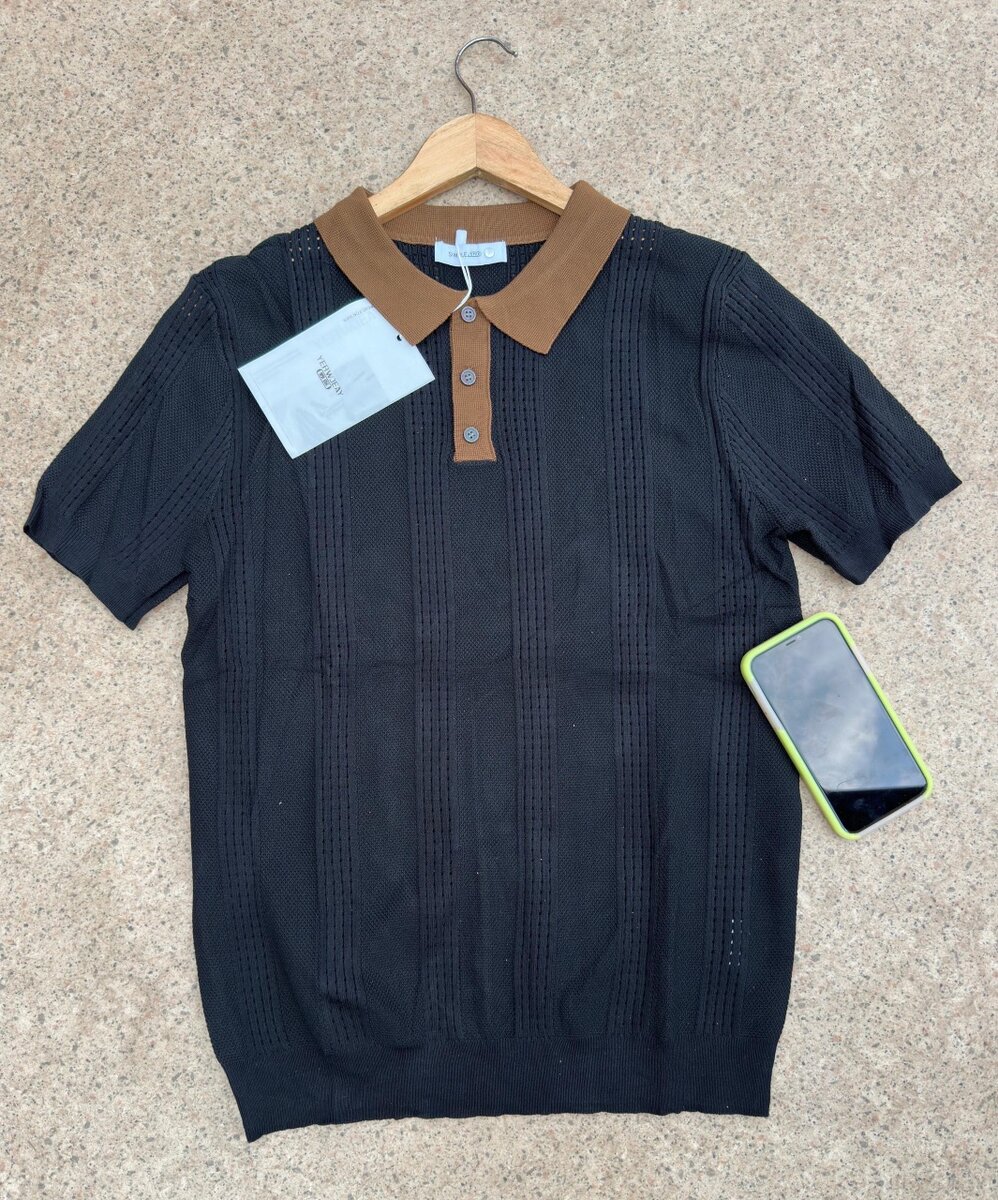 Découvrez ce polo en maille pour homme, alliant style et confort. Parfait pour toutes les occasions, il se distingue par son col marron contrastant. Un choix idéal pour un look sophistiqué et détendu en même temps.