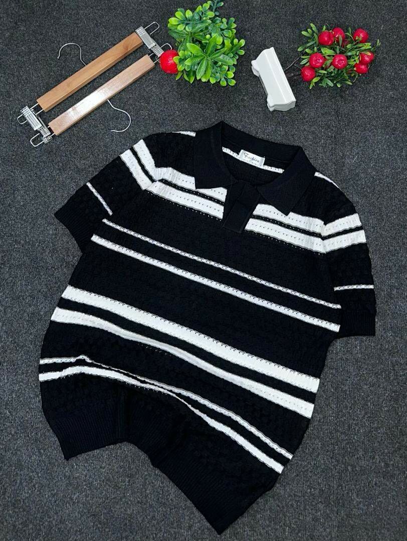Optez pour le chic décontracté avec ce polo à manches courtes en tricot. Conçu avec des motifs rayés modernes, ce vêtement polyvalent est idéal pour un look raffiné au quotidien. Fabriqué à partir de matériaux de haute qualité, il offre un confort exceptionnel et une durabilité accrue. Parfait pour toute occasion, ce polo est un ajout indispensable à votre garde-robe.