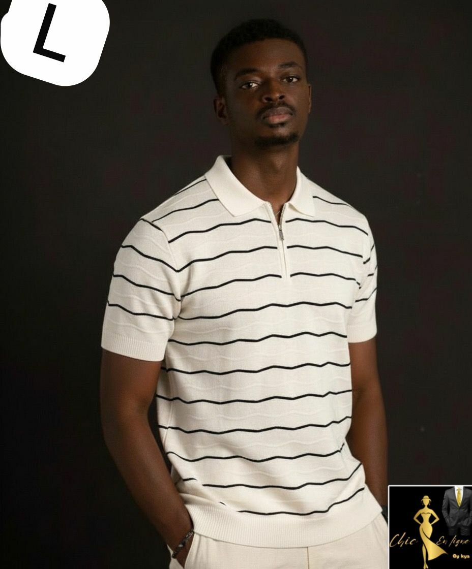 Optez pour ce polo en tricot à rayures, idéal pour un look chic et décontracté. Confortable et stylé, parfait pour toutes vos sorties.