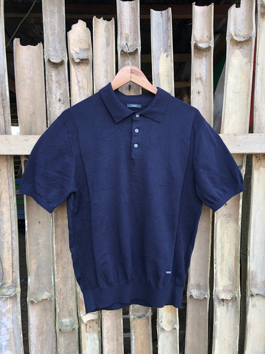 Polo bleu marine pour homme, confortable et élégant. Léger et respirant, idéal pour les occasions décontractées ou semi-formelles. Tache visible au dos.