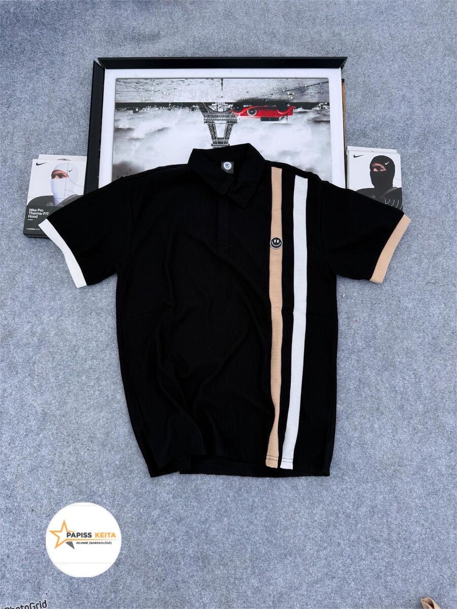 Ce polo noir avec rayures contrastées est parfait pour un look chic et décontracté. Avec son tissu confortable et son design moderne, il s’adapte à toutes les occasions. Idéal pour les sorties en ville ou les rendez-vous professionnels.