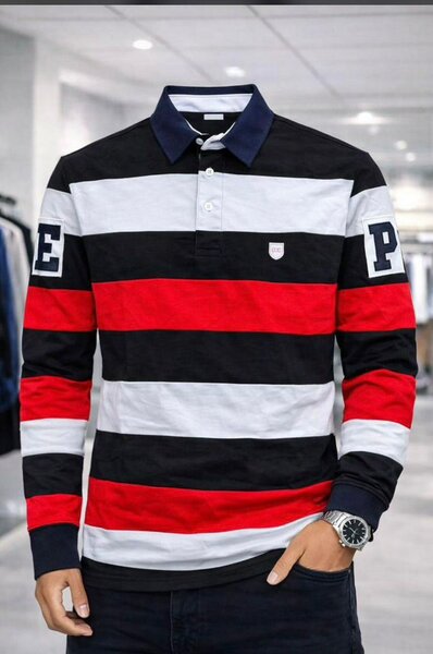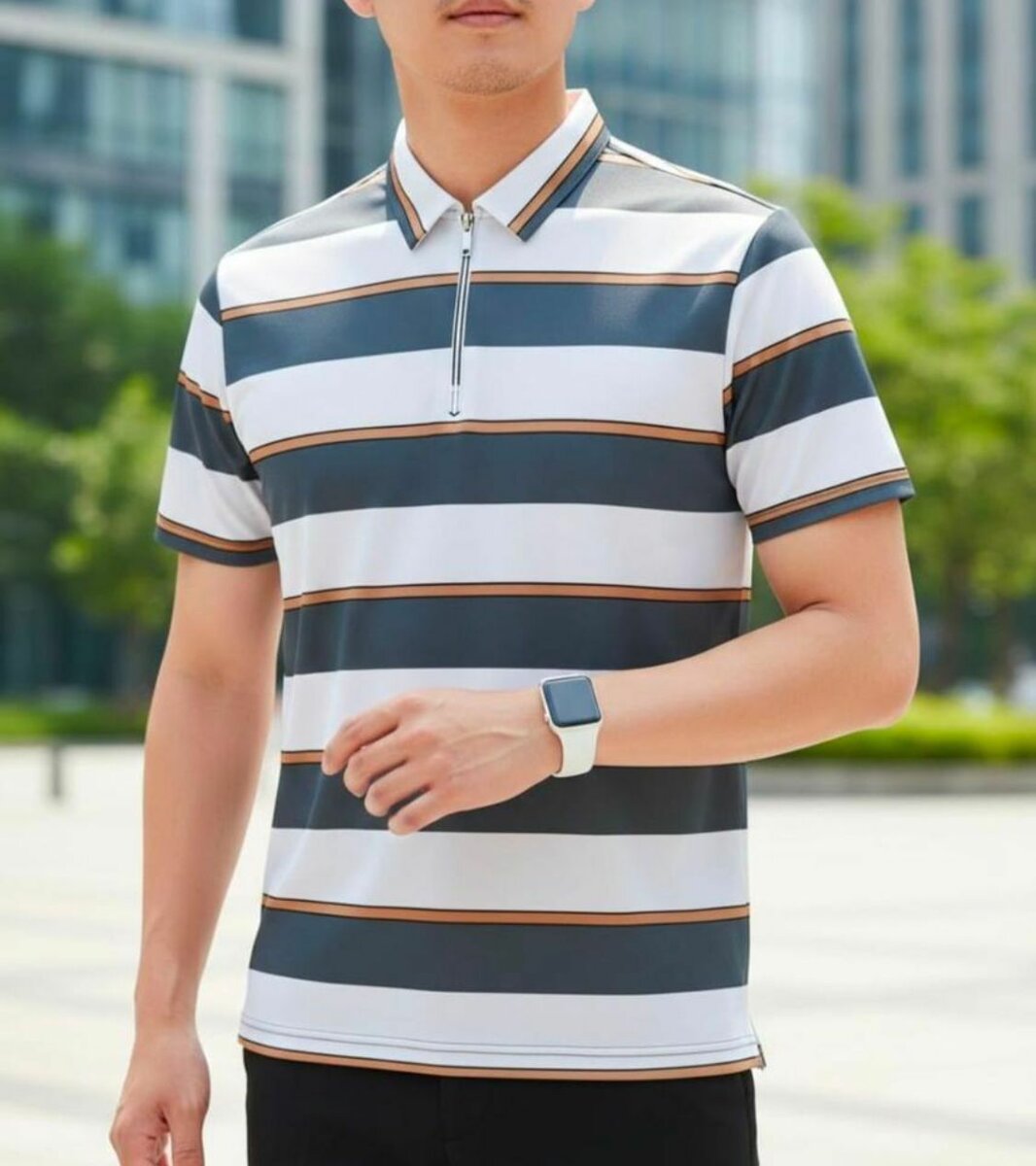 Polo homme élégant et décontracté avec fermeture éclair et motif rayé. Conçu pour un look moderne et tendance. Disponible en plusieurs coloris.