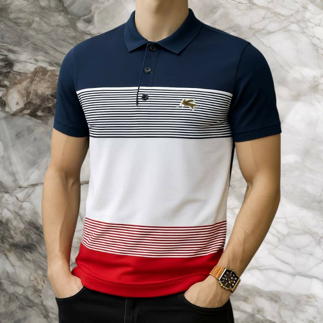 Découvrez ce polo homme élégant aux rayures modernes parfait pour un look décontracté. Fabriqué en tissu de qualité, il assure confort et style. Idéal pour le quotidien ou les occasions spéciales. Ce polo devient un incontournable de votre garde-robe!