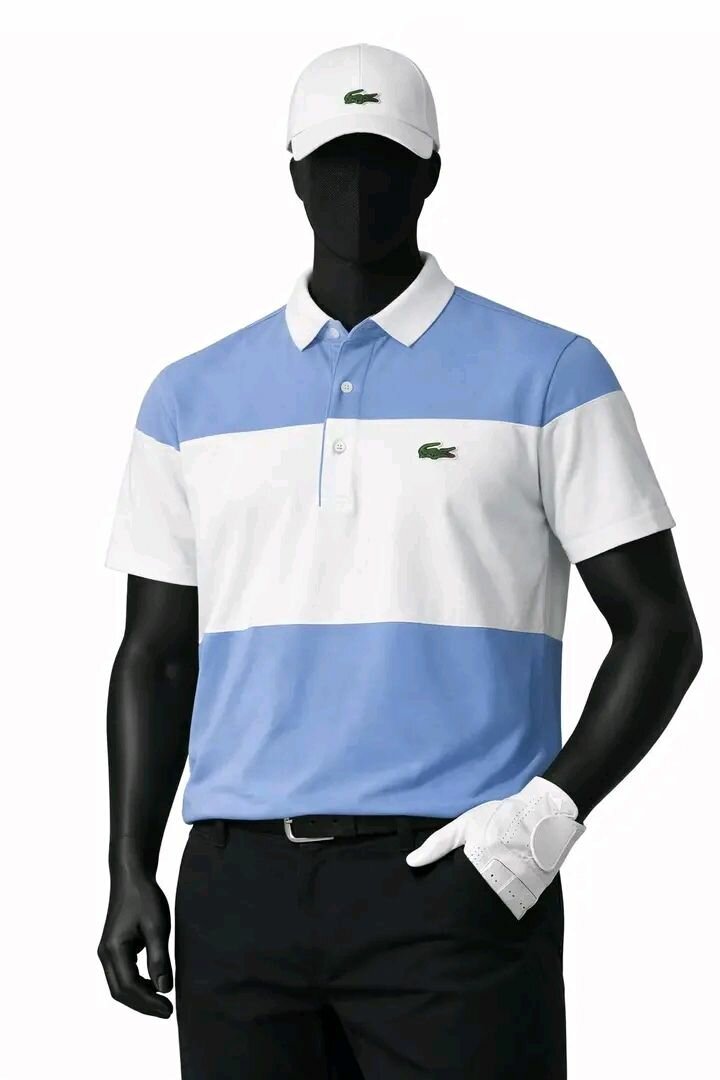 Découvrez ce polo Lacoste pour homme, alliant confort et style avec ses bandes bleu et blanc. Idéal pour les amateurs de golf et les adeptes de la mode décontractée.