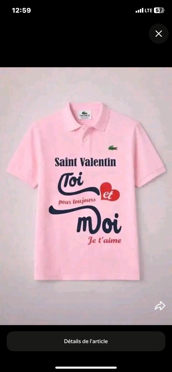 Polo Lacoste pour la Saint-Valentin. Conçu pour les couples amoureux, ce polo est parfait pour une tenue élégante et décontractée.