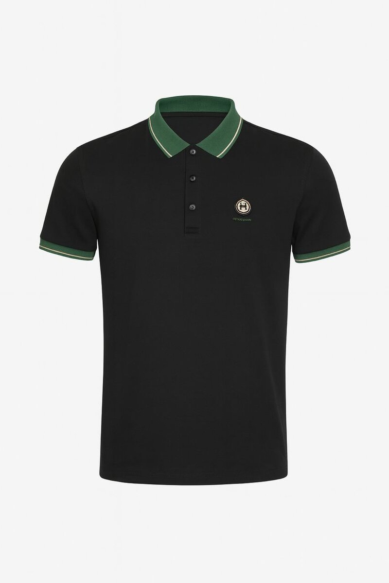 Polo noir classique avec col vert. Tissu doux et respirant. Idéal pour un look chic et décontracté.