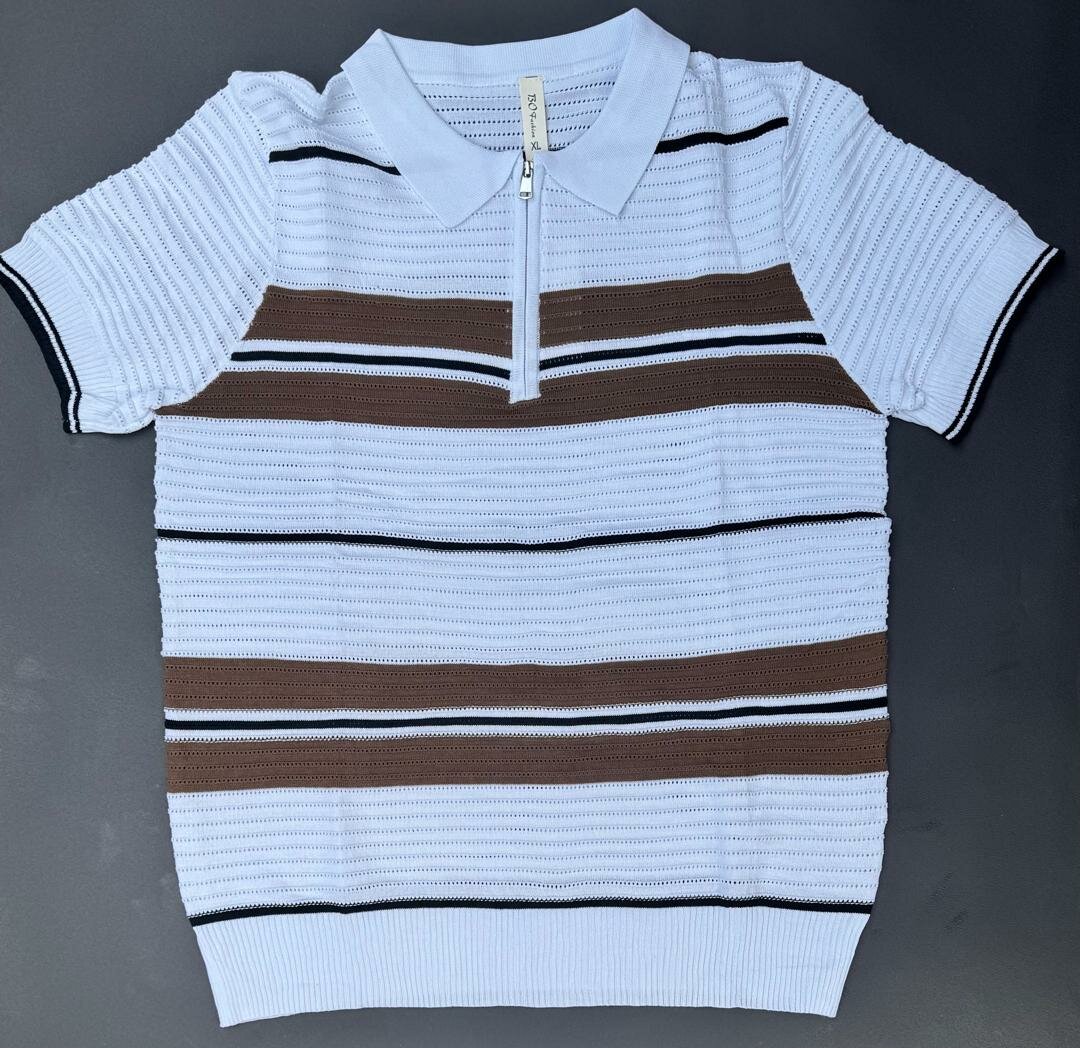 Polo en maille avec fermeture éclair et rayures contrastées. Conçu pour un confort optimal, il est idéal pour les tenues décontractées ou semi-formelles.