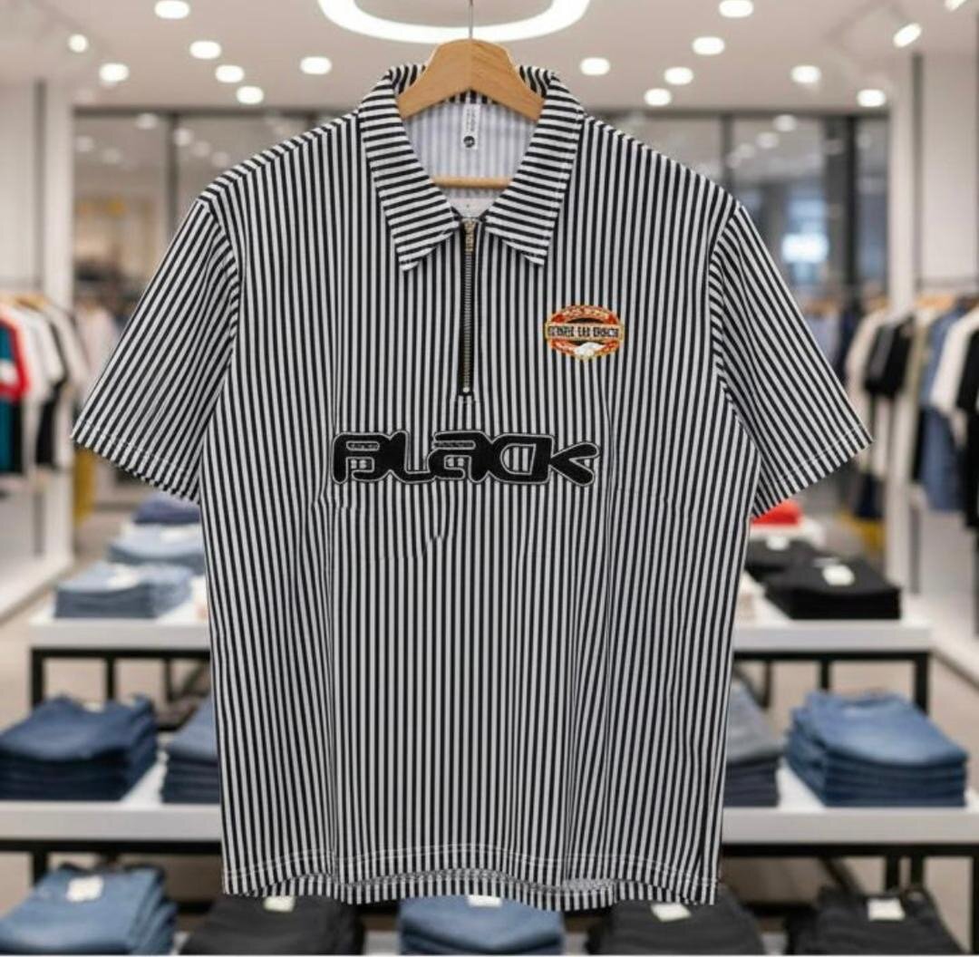 Polo élégant avec rayures noires et blanches, fermeture éclair et logo. Conçu pour les hommes, il offre un style décontracté et chic. Idéal pour les occasions quotidiennes ou les sorties.