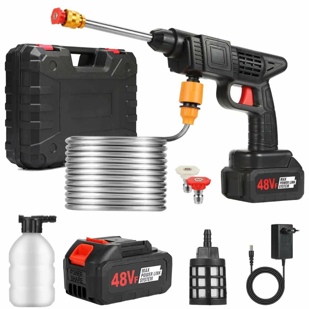 Nettoyeur haute pression électrique sans fil avec chargeur et 2 buses, nettoyeur de voiture portable, lave-linge, 2 batteries 96V