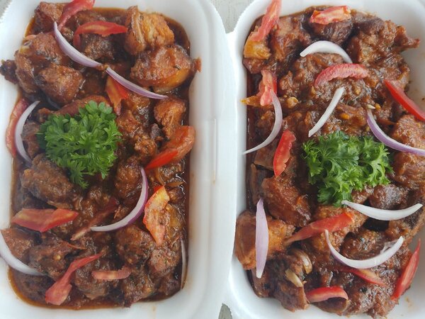 Délicieux ! Le porc est parfaitement grillé et les oignons et les tomates ajoutent une touche de saveur et de fraîcheur.