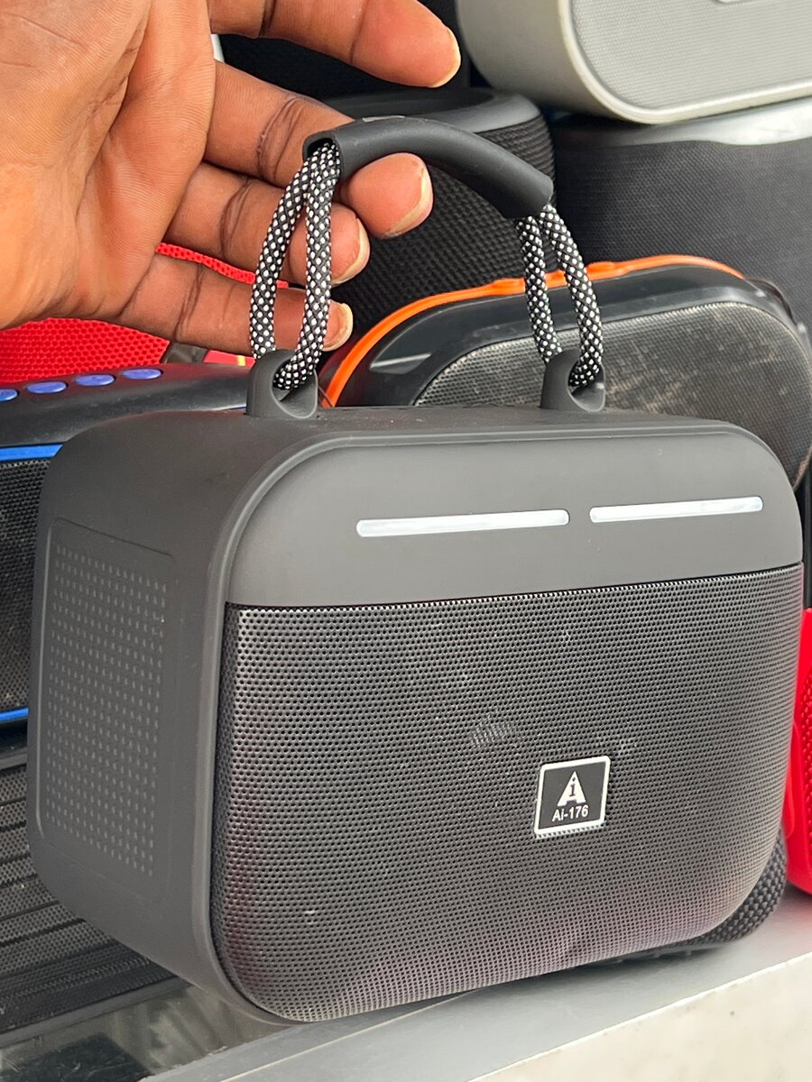 Enjoy powerful sound on the go with this sleek portable Bluetooth speaker. Featuring a compact design with ergonomic handle, it's perfect for picnics, beach outings, or home use. Connects effortlessly to devices with USB and AUX inputs. Ideal for music lovers seeking convenience and style.