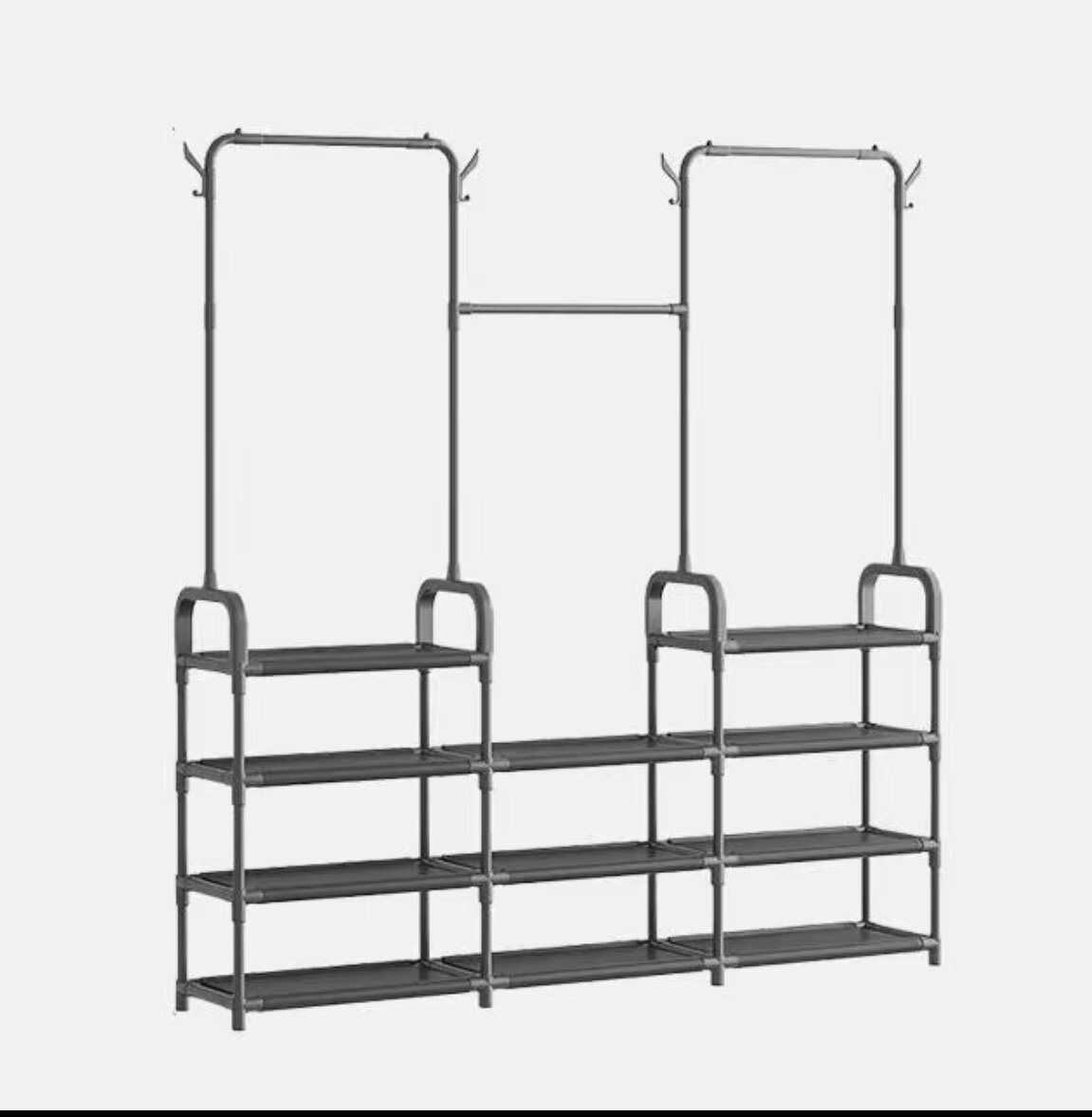 Optimisez votre espace avec ce portant à vêtements modulable. Idéal pour organiser vos vêtements, chaussures et accessoires grâce à ses étagères solides et ses crochets pratiques. Parfait pour une chambre ou un dressing élégant.