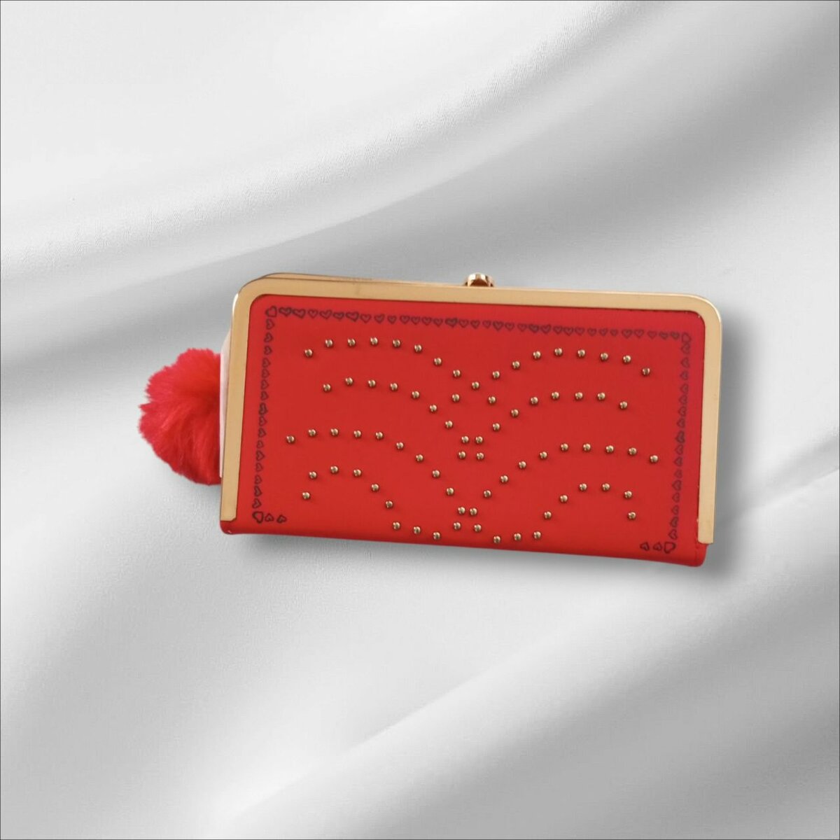 Portefeuille en cuir clouté avec pompon élégant, idéal pour un style chic et moderne. Compact et pratique, parfait pour organiser vos cartes et monnaie. Un accessoire indispensable pour toutes sorties.