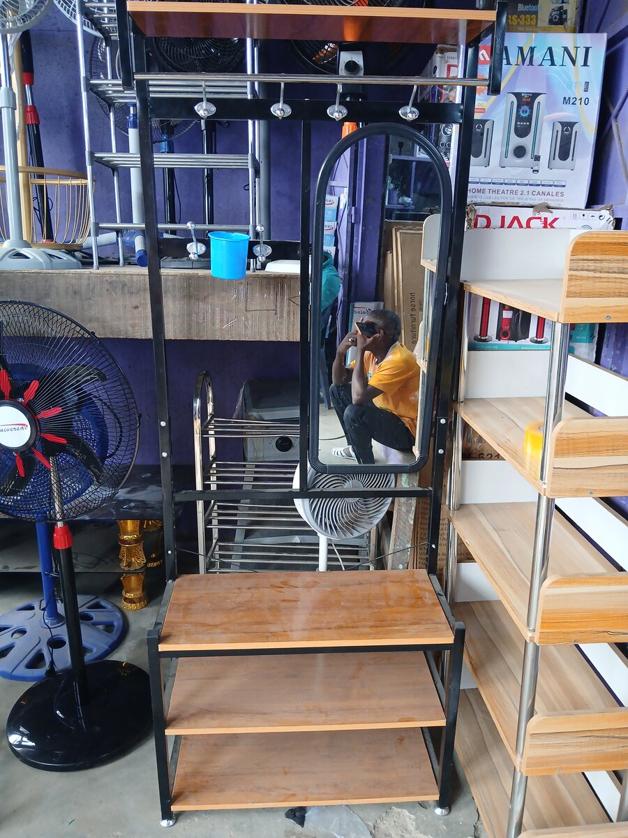 Optez pour ce porte-manteau moderne avec miroir et étagères en bois. Idéal pour une entrée élégante et ordonnée. Son design pratique permet de suspendre vos vêtements avec style tout en vous offrant un espace de rangement supplémentaire. Monté sur roulettes pour une mobilité facile.