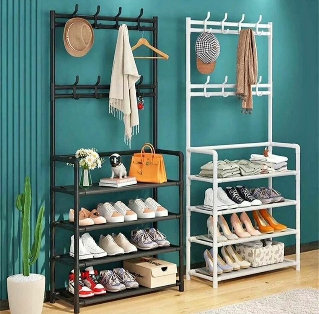 Optimisez votre espace d'entrée avec ce porte-manteau et étagère à chaussures 2-en-1. Idéal pour organiser vêtements et souliers, ce meuble est parfait pour garder votre maison soignée et accueillante. Design élégant et fonctionnel, il s'intègre harmonieusement dans tout intérieur.