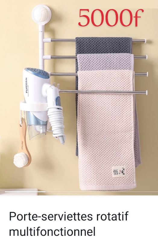 Transformez votre salle de bain avec ce porte-serviettes rotatif multifonctionnel. Conçu pour maximiser l'espace, il organise serviettes, accessoires et bien plus. Solide et élégant, il s'intègre parfaitement à tout décor. Idéal pour maintenir l'ordre et l'accessibilité dans votre salle de bain.