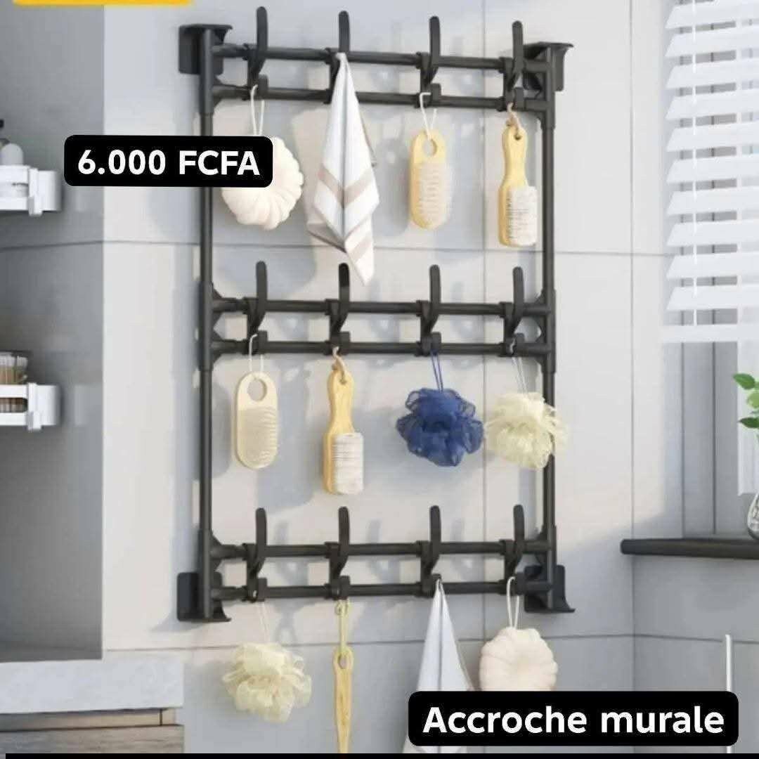 Optimisez votre espace avec ce porte-serviettes mural à crochets multiples. Parfait pour organiser serviettes, accessoires de bain et ustensiles, ce rangement pratique est idéal pour la salle de bain ou la cuisine.