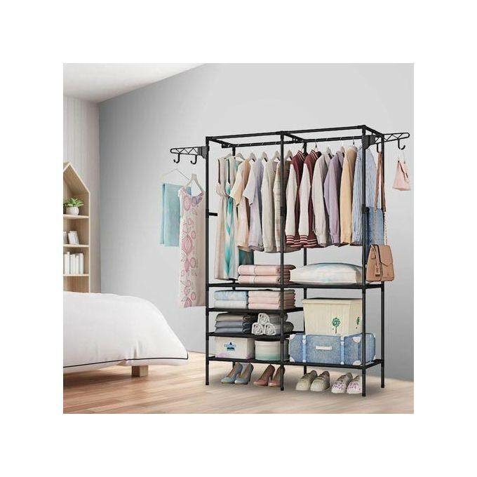 Organisez votre garde-robe avec ce portant à vêtements avec étagères. Conçu pour un rangement optimal, il est idéal pour les vêtements, les chaussures et les accessoires. Facile à assembler.