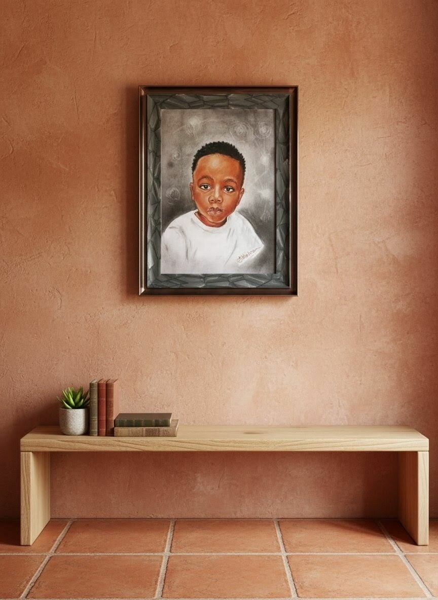 Découvrez ce magnifique portrait d'enfant peint à la main, parfait pour embellir votre intérieur. Cadre élégant et moderne pour ajouter une touche artistique à votre maison ou bureau. Idéal comme cadeau unique et mémorable pour des occasions spéciales. Apportez une ambiance chaleureuse et personnelle à votre espace avec cet art exceptionnel.