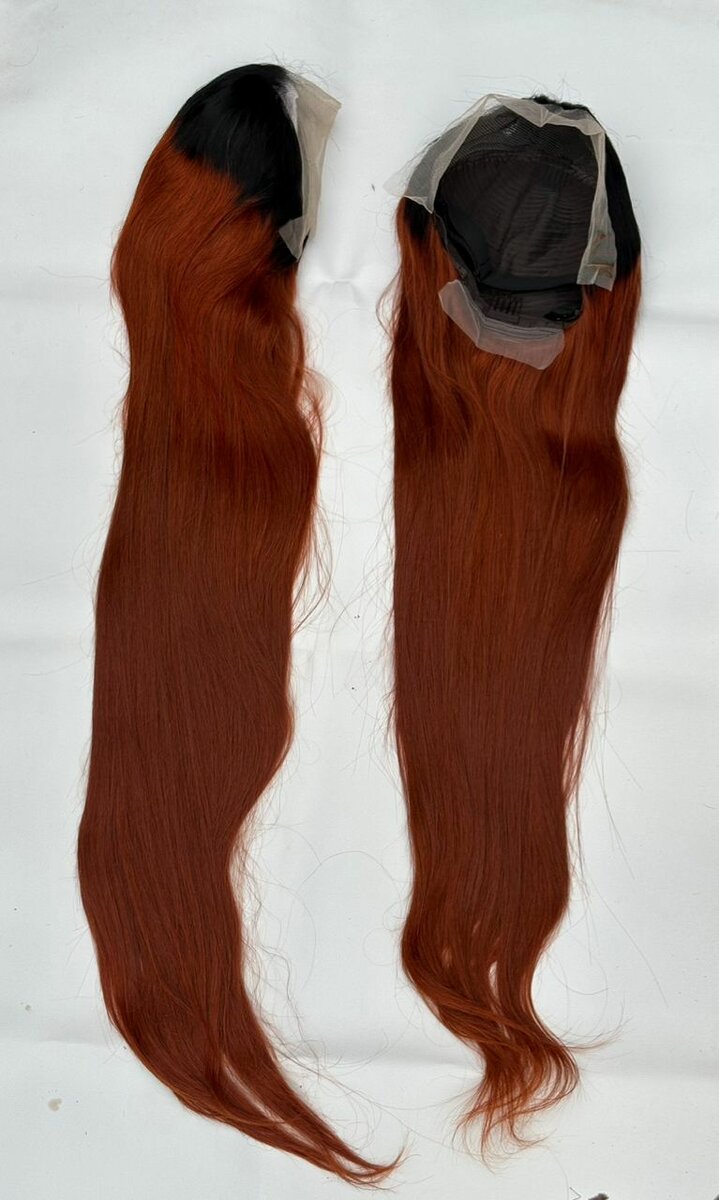 Postiche cheveux ondulés marron/roux. Changez de look facilement avec cette perruque frontale de haute qualité. Conception naturelle, confortable et facile à mettre.