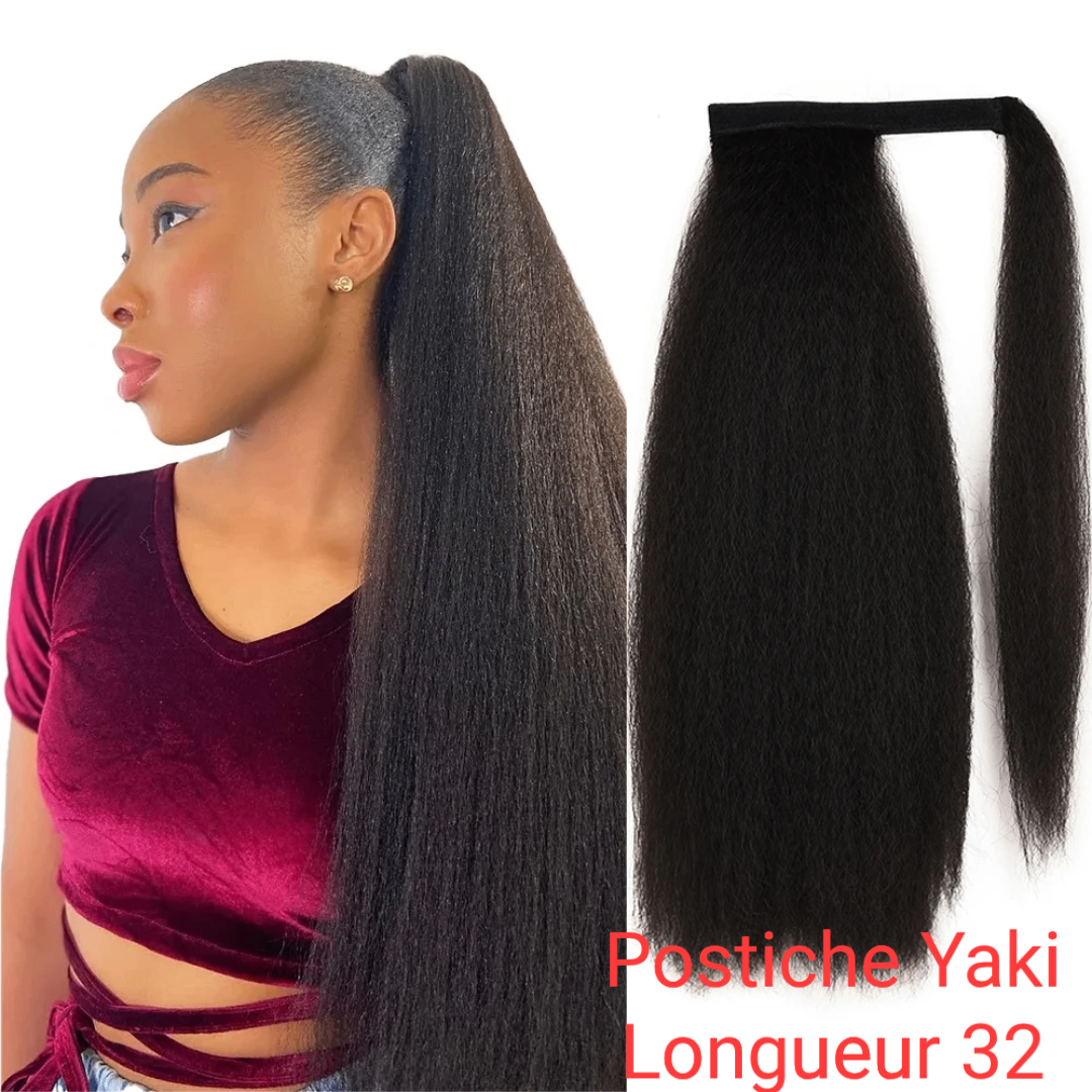 Postiche Yaki pour queue de cheval, cheveux longs et lisses de 32 pouces. Facile à utiliser et parfait pour un look élégant. Convient à toutes les occasions.