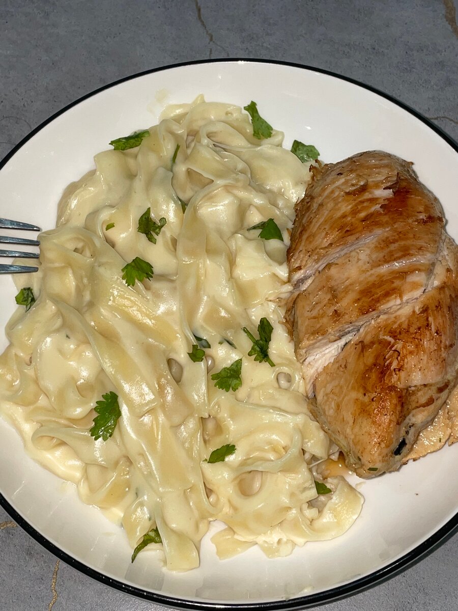 Savourez notre Poulet Alfredo Crémeux, un plat délicieux avec des pâtes fondantes et une sauce onctueuse. Parfait pour un dîner en famille ou un repas gourmand, ce plat marie subtilement le goût riche du poulet grillé avec une sauce Alfredo crémeuse. Idéal pour les amateurs de cuisine italienne.