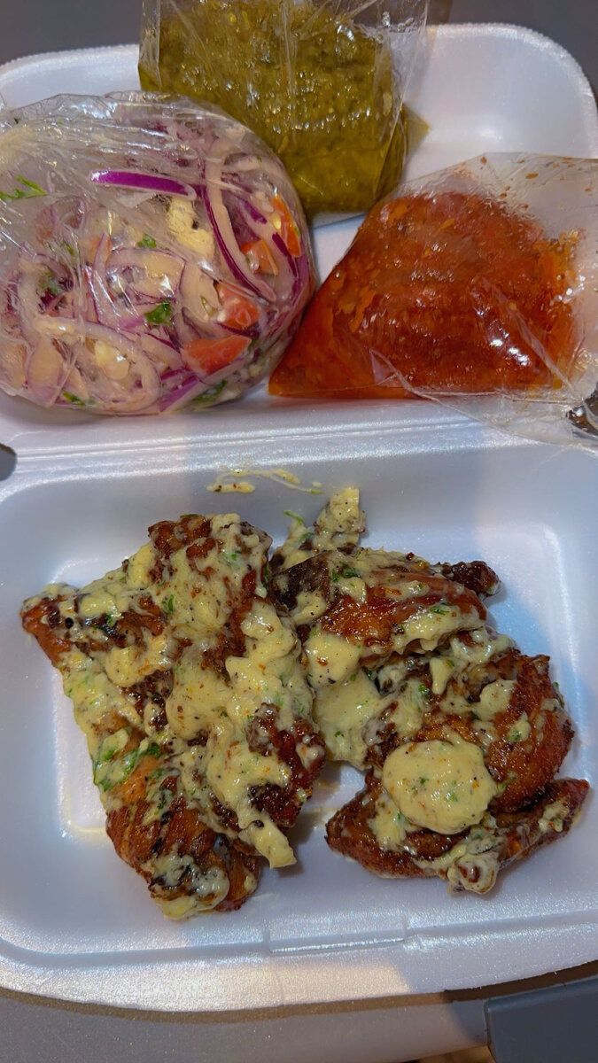 Dégustez notre poulet frit doré, accompagné de délicieuses sauces . Parfait pour un repas savoureux et rapide. Toujours bien fait .
