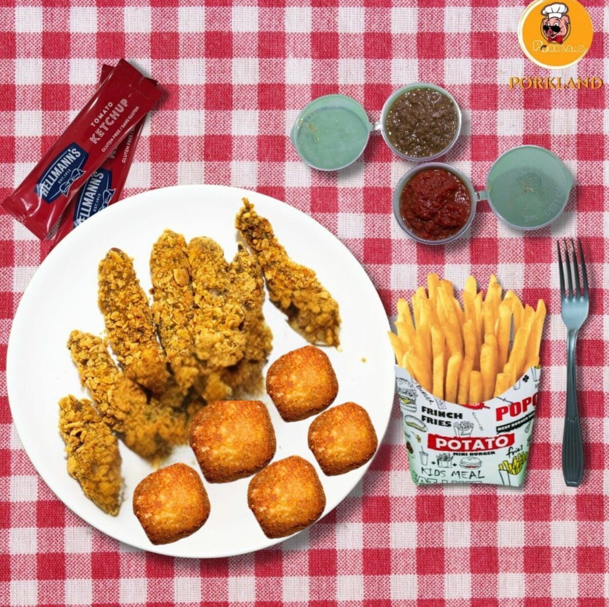 Dégustez notre délicieux poulet frit croustillant accompagné de frites dorées. Parfait pour un repas rapide et savoureux. Idéal pour les amateurs de fast-food!