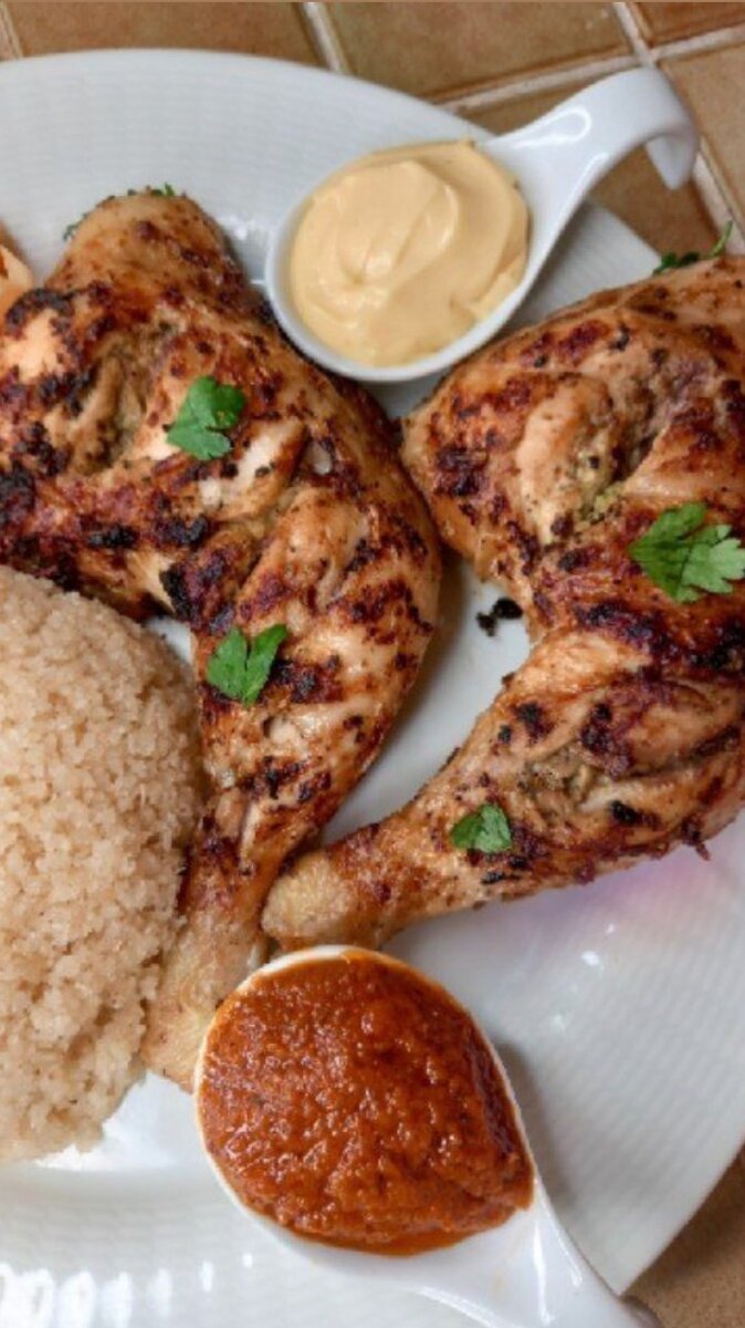 Savourez ce délicieux poulet grillé accompagné de sauces onctueuses, parfait pour un dîner gourmand. Idéal pour les amateurs de plats copieux et savoureux à partager en famille ou entre amis. Parfait pour une occasion spéciale ou simplement pour se faire plaisir.