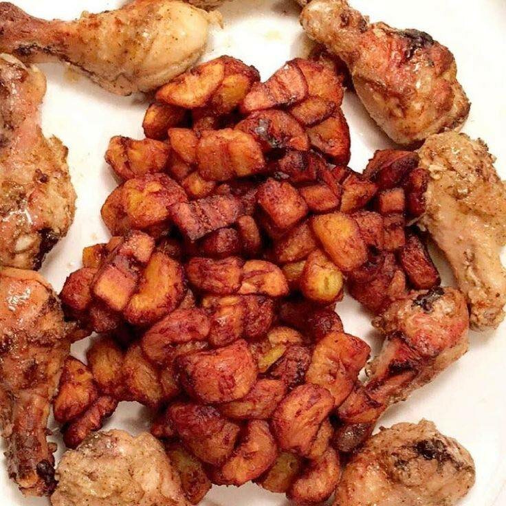 Savourez ce délicieux plat de poulet grillé accompagné de plantains frits.