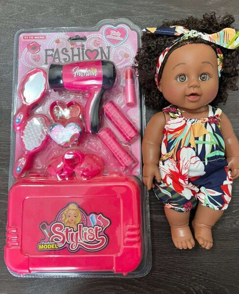 Poupée africaine 30cm avec accessoires et tenue de rechange