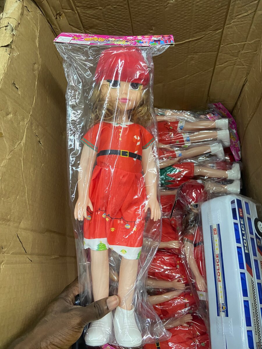 Charmante poupée pour enfants, habillée d'une robe rouge vive. Parfaite pour les jeux de rôle et l'imagination. Idéale comme cadeau pour toute occasion.