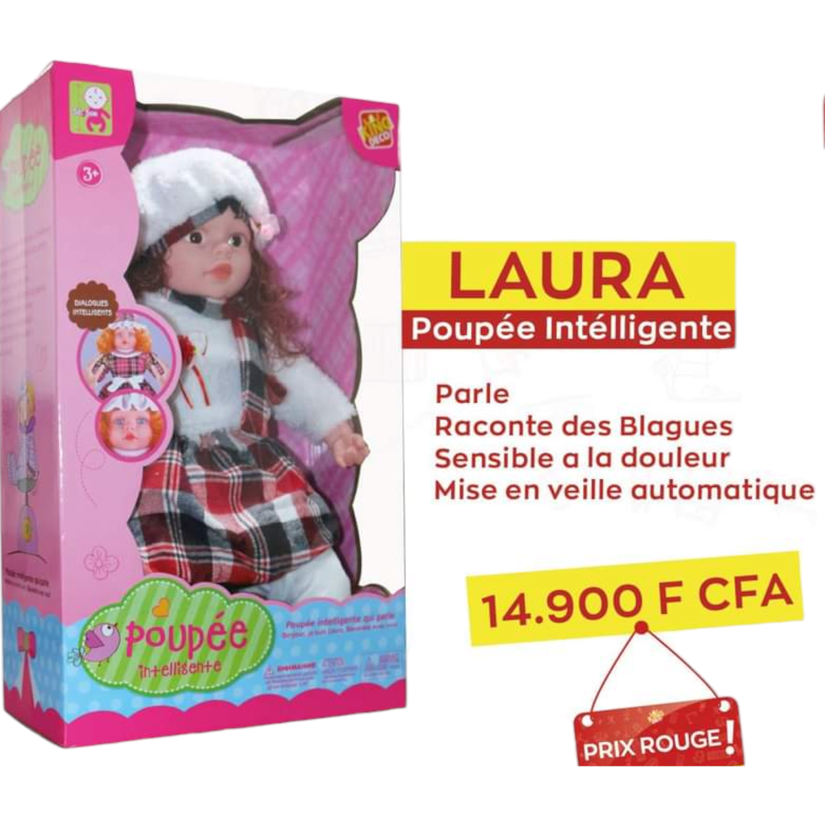 Elle parle en français, raconte des histoires, chante répète Pile inclus