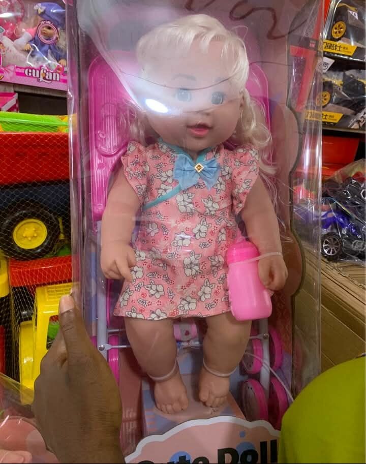 Découvrez la poupée 'Cute Doll', parfaite pour les enfants. Elle est livrée avec une bouteille et des habits mignons. Un cadeau idéal pour développer l'imagination.