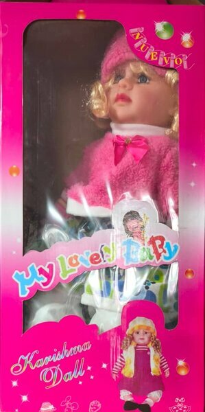 Poupée Karishma de grande taille, habillée en rose avec bonnet assorti. Jolie poupée de collection pour enfant, idéale comme cadeau ou déco de chambre. En boîte. Pour jeu créatif, à partir de 3 ans.
