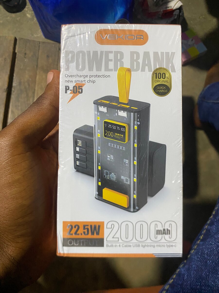 Optimisez votre énergie avec ce Power Bank de 20,000 mAh. Doté d'une protection contre la surcharge, il inclut 4 câbles intégrés : USB-A, lightning, micro USB et USB-C. Idéal pour voyageurs et utilisateurs intensifs d'appareils mobiles. Profitez d'une charge rapide et pratique, où que vous soyez.